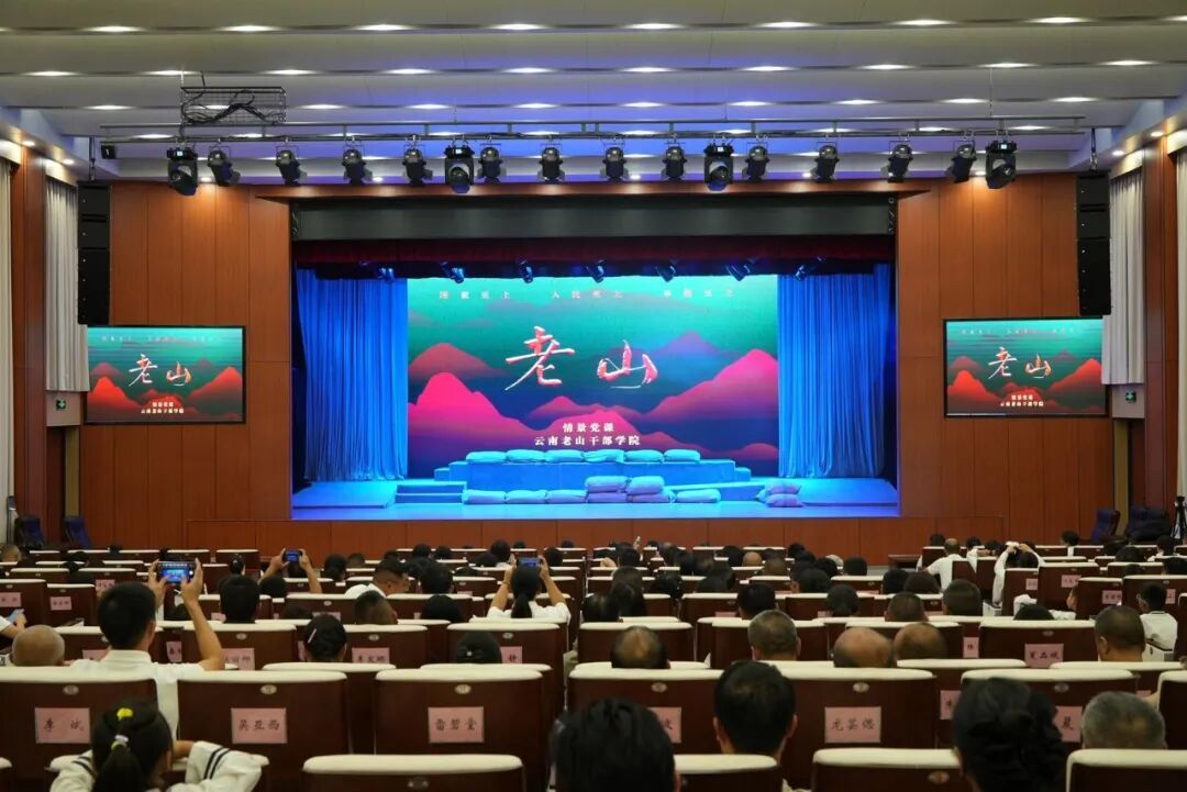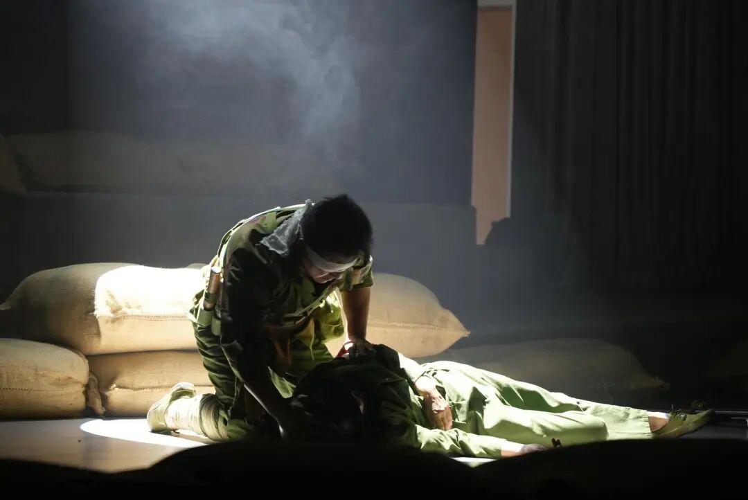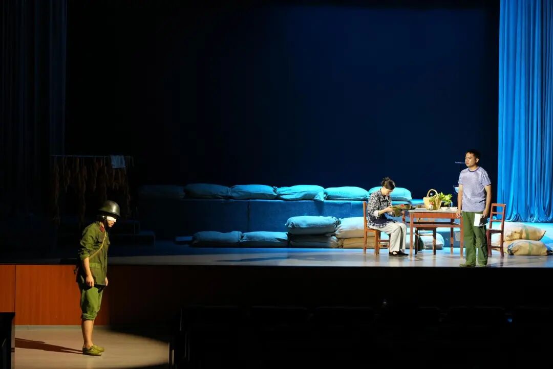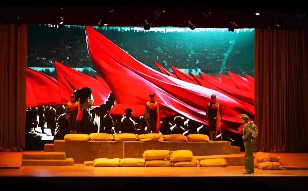 红歌曲罢,情景党课《老山》的故事徐徐展开。我要去参军、猫耳洞的生活、浸洗血衣、死吻入梦、战地的阳光、老山兰……当发生在老山战地的一幕幕画面展现舞台时,孩子们凝神观看,心情随着故事的推进跌宕起伏。