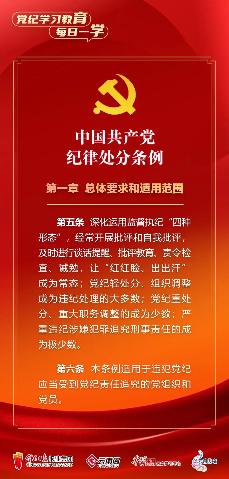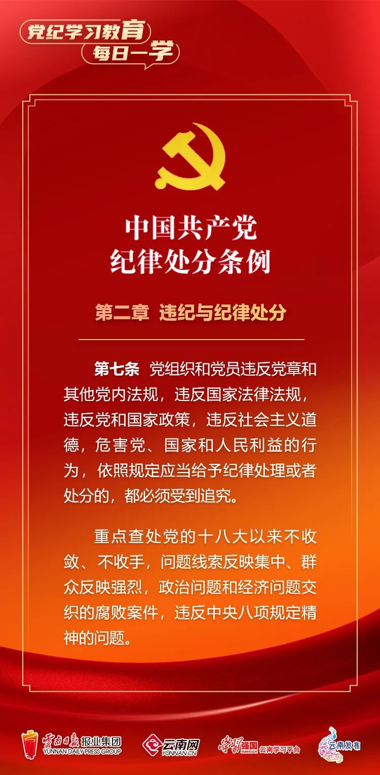 为深入学习贯彻落实习近平总书记关于党纪学习教育的重要讲话和重要指示精神,便于全省各级党组织和广大党员、干部深入学习贯彻修订后的《中国共产党纪律处分条例》,即日起,云南网、“学习强国”云南学习平台、云南发布共同策划推出“党纪学习教育•每日一学”专栏,营造全员参与、人人学纪的浓厚氛围。今天,我们推出第③期,一起来学习。