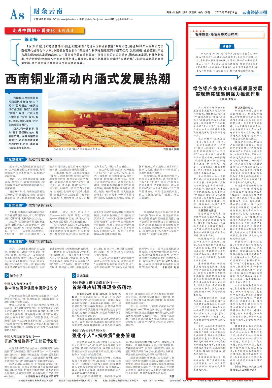 “智库报告·绿色铝谷文山样本”栏目