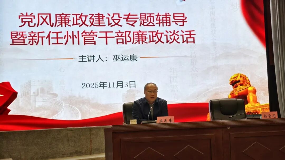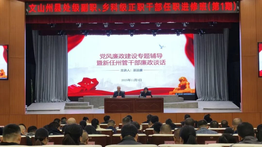 11月3日上午,州委常委、州纪委书记、州监委主任巫运康在文山州县处级副职、乡科级正职干部任职进修班上,围绕党风廉政建设和反腐败工作,开展专题辅导并进行集体廉政谈话。